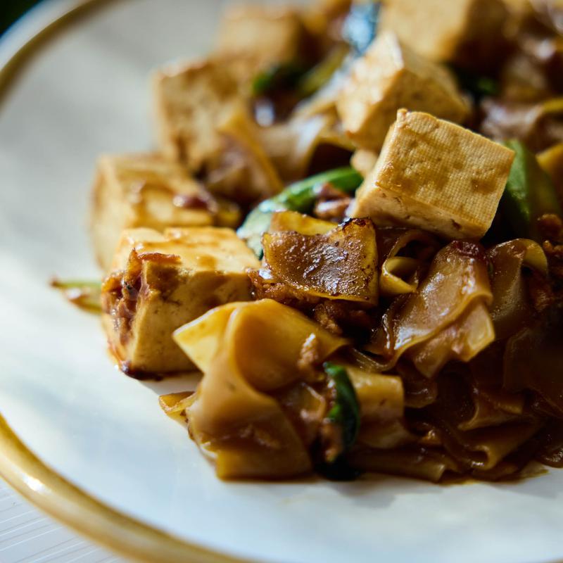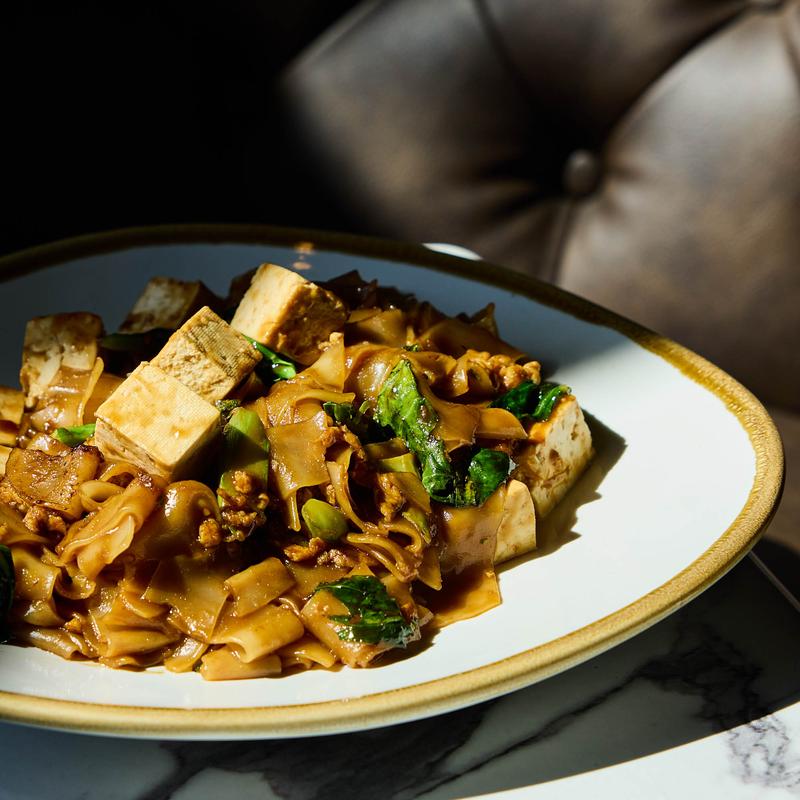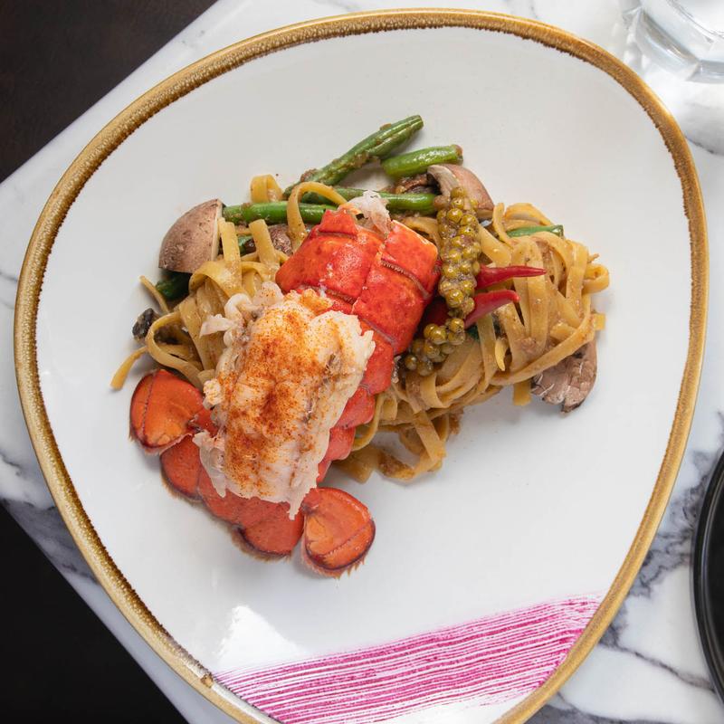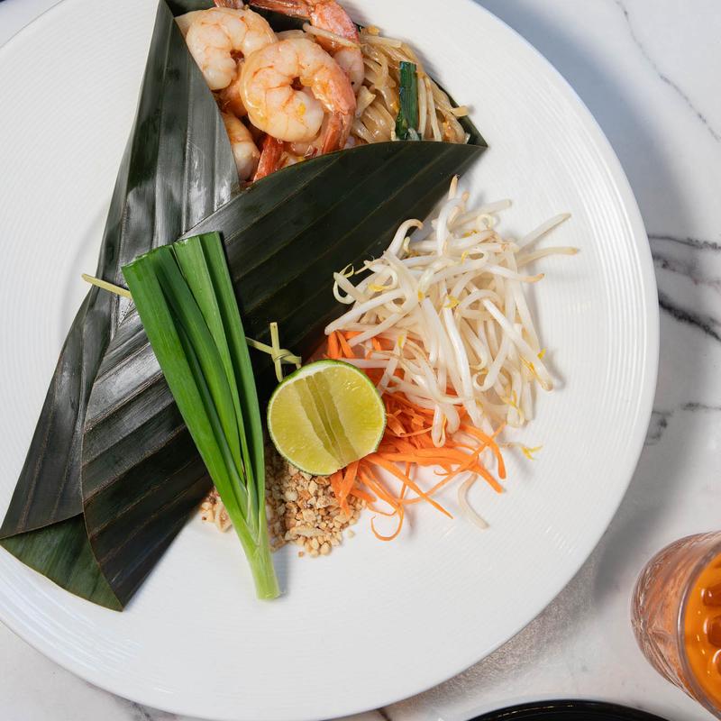Wok-fried Rice-Noodles, drenched in tangy tamarind sauce, with the perfect mix of egg, bean sprouts, shallots, pickled turnip, and chives. Sprinkled with ground peanuts and served with a lime wedge for that extra zing |Choose your protein: Chicken, Tofu, or Shrimp +$8.00, Seafood +$8 Wild Japanese Sea Bass +$10.00, Lobster (4oz) +$22.00,