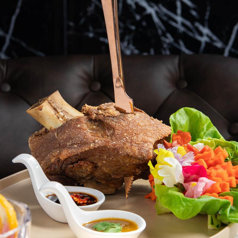 Get ready for a pork leg party! Slow-cooked in a magical blend of spices, then fried to crispy. It comes with a trio of flavorful sauces: Zesty Ginger Chili Sweet Soy, Tangy Kalabaw Pineapple Herbal, and a side of pickled vegetables.